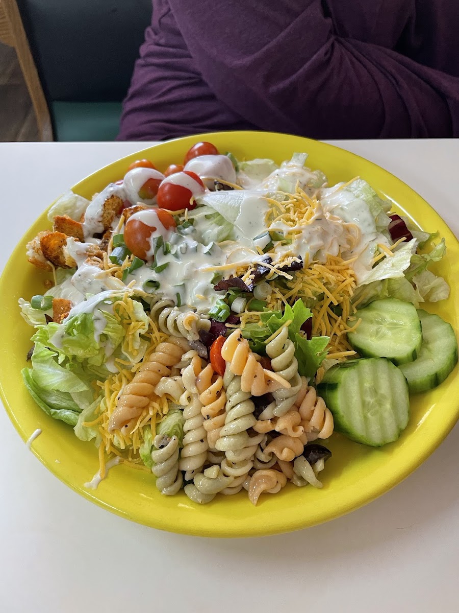 This is the place for good home style cooking with a big salad bar. Reasonable prices with really good and friendly service. Free soft serve ice cream after your meal!